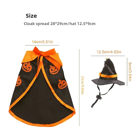 🎃🐶 Halloween-Umhang mit Hut für Hunde – Kürbis-Kostüm für kleine & mittelgroße Hunde