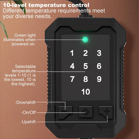 Reptilien-Heizmatte 10 Stufen – Temperaturregulierbare Terrarium-Heizung | Untertank-Heizer für Spinnen, Echsen & Amphibien