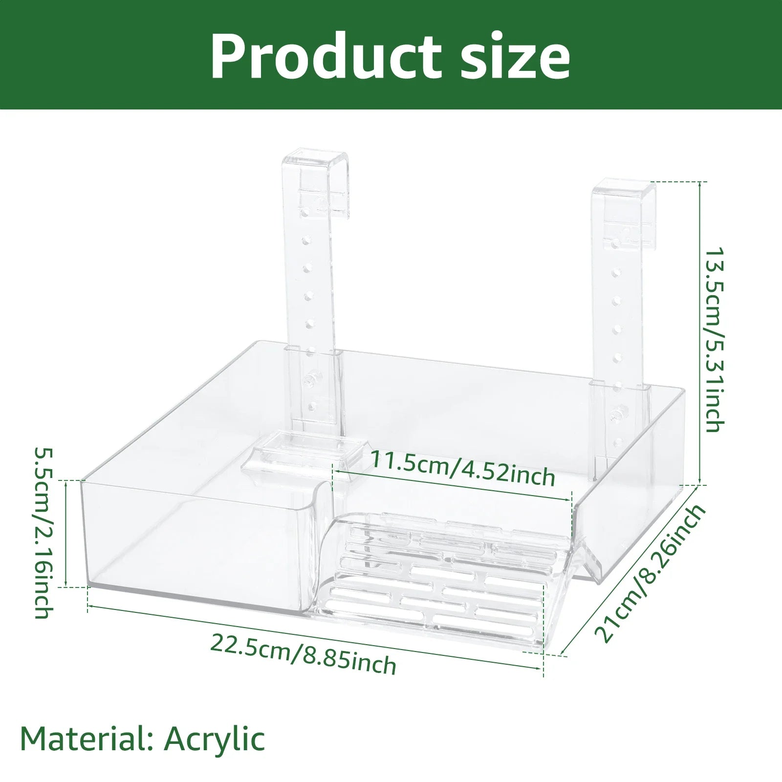 Gefertigt aus hochwertigem Acryl, ist die Plattform langlebig, leicht zu reinigen und beeinflusst nicht die Wasserqualität. Die höhenverstellbare Aufhängung ermöglicht flexible Anpassungen an verschiedene Aquariengrößen und Bedürfnisse. Mit ausreichend Platz (22,5 × 21 cm) können zusätzlich Dekorationen wie Pflanzen oder Steine integriert werden, um den Lebensraum deiner Schildkröte lebendiger zu gestalten.