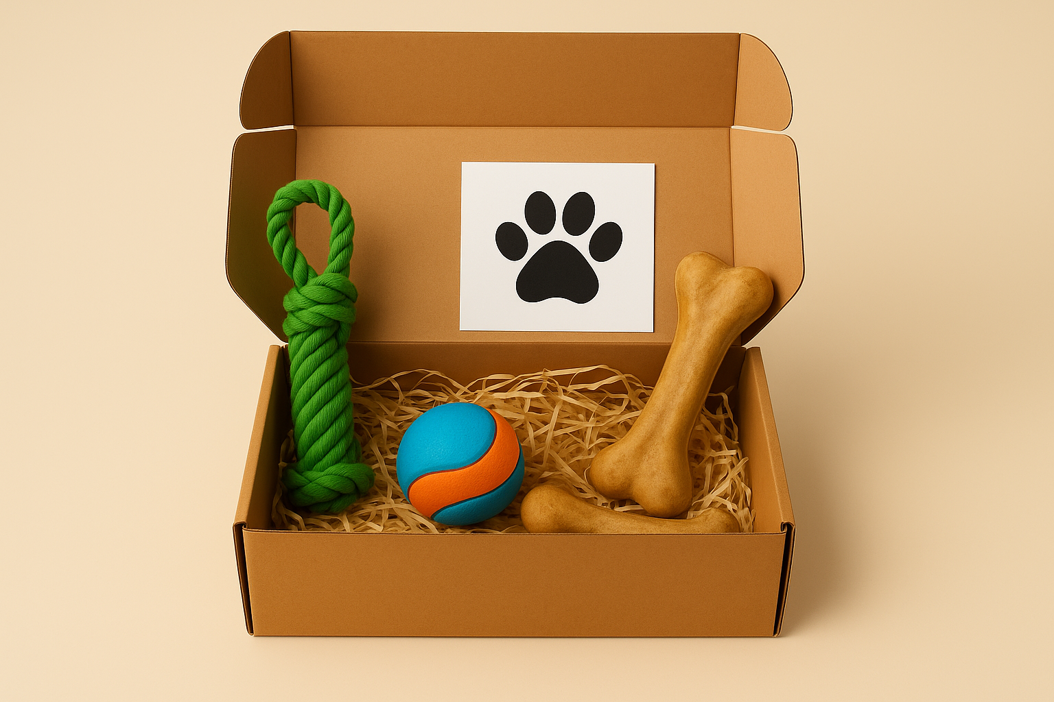 Der Kunde erhält eine Überraschungsbox mit neuen und exklusiven Produkten für das Haustier.