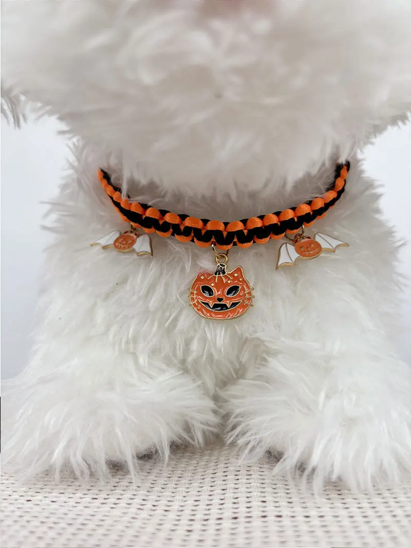 1× Halloween-Haustierhalsband mit Kürbis-Anhänger