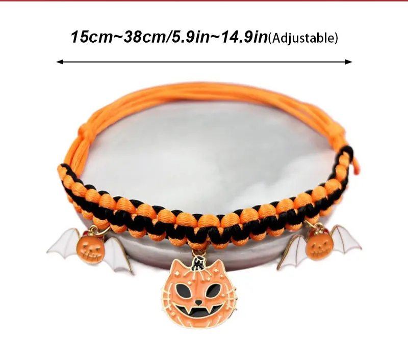 🐶🎃 Halloween-Haustierhalsband – Handgewebt mit Kürbis-Anhänger für Hunde & Katzen