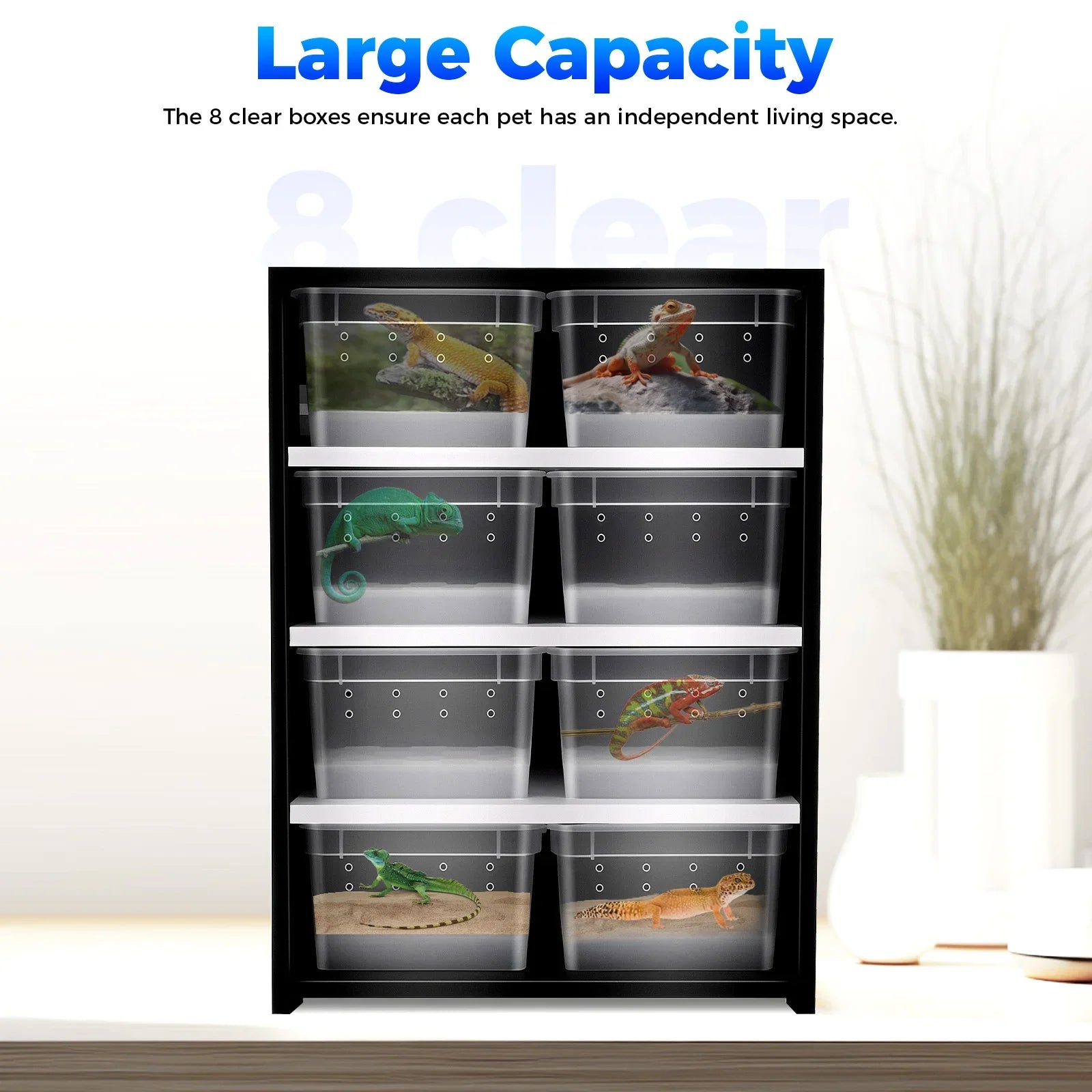 Convenient to Manage: 8 clear boxes are convenient for you to observe and manage your pets, ensuring that each pet has an independent living space. You can adjust the box configuration based on the type and number of pets to meet various feeding needs.