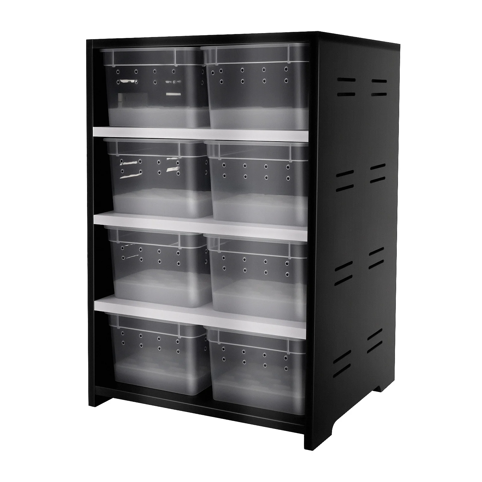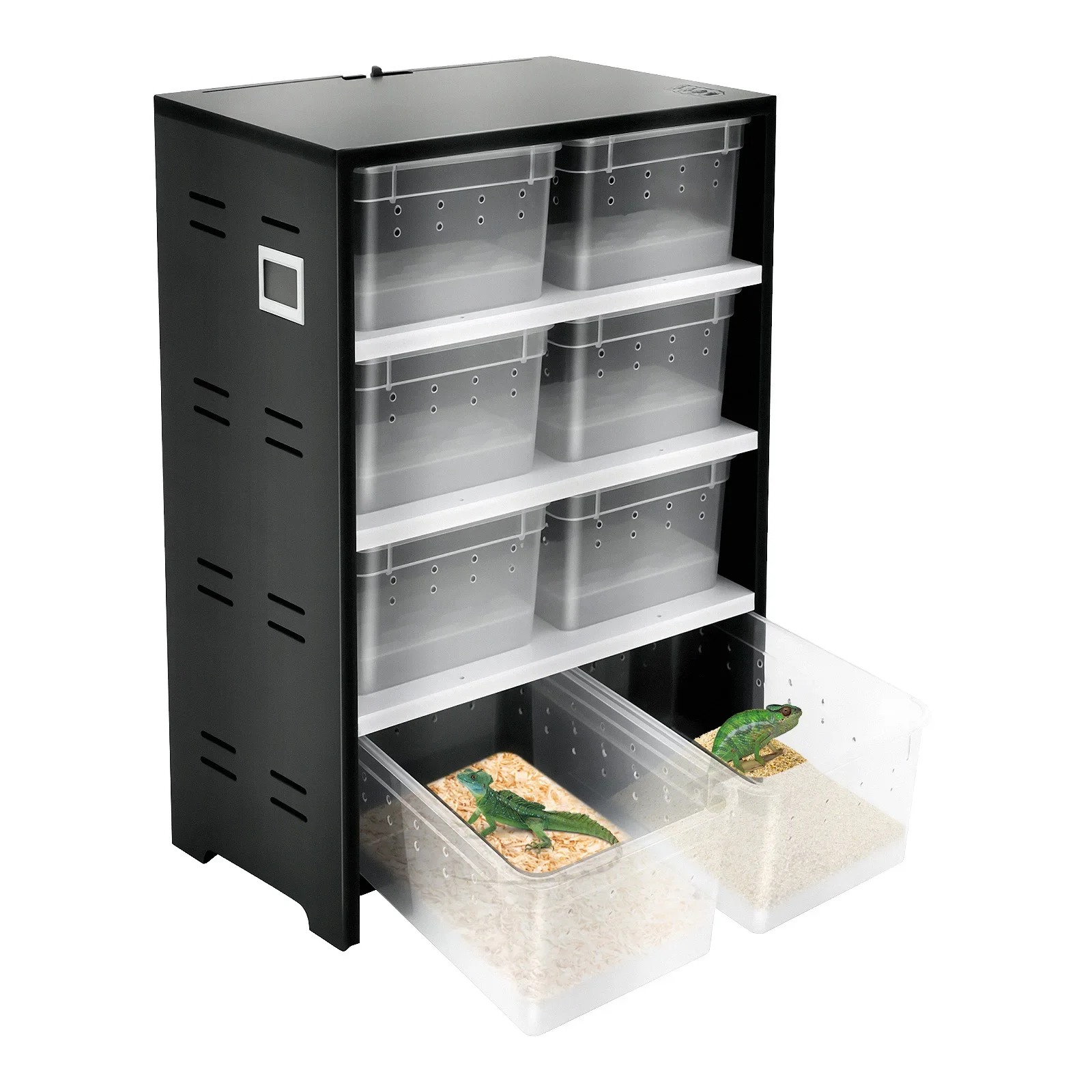 Dieses Zuchtterrarium ist die ideale Lösung für die Haltung und Aufzucht kleiner Reptilien, Spinnen und Insekten. Das platzsparende Cabinet verfügt über 8 transparente Boxen, die eine einfache Beobachtung der Tiere ermöglichen.