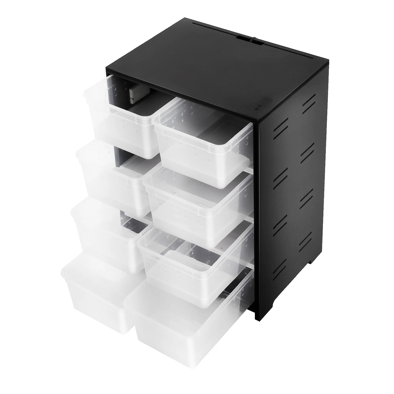 With its compact design and powerful features, this breeding cabinet is ideal for keeping your amphibian pets. It is designed with multiple clear boxes for easy observation and management of your pets. Each box is well-ventilated to ensure a healthy living environment for your pet. The cabinet is made of premium material with a stylish appearance and is suitable for various home environments. Equipped with a heating pad, it can provide your pet with ideal living conditions, making your pet's life more comfortable and safe.