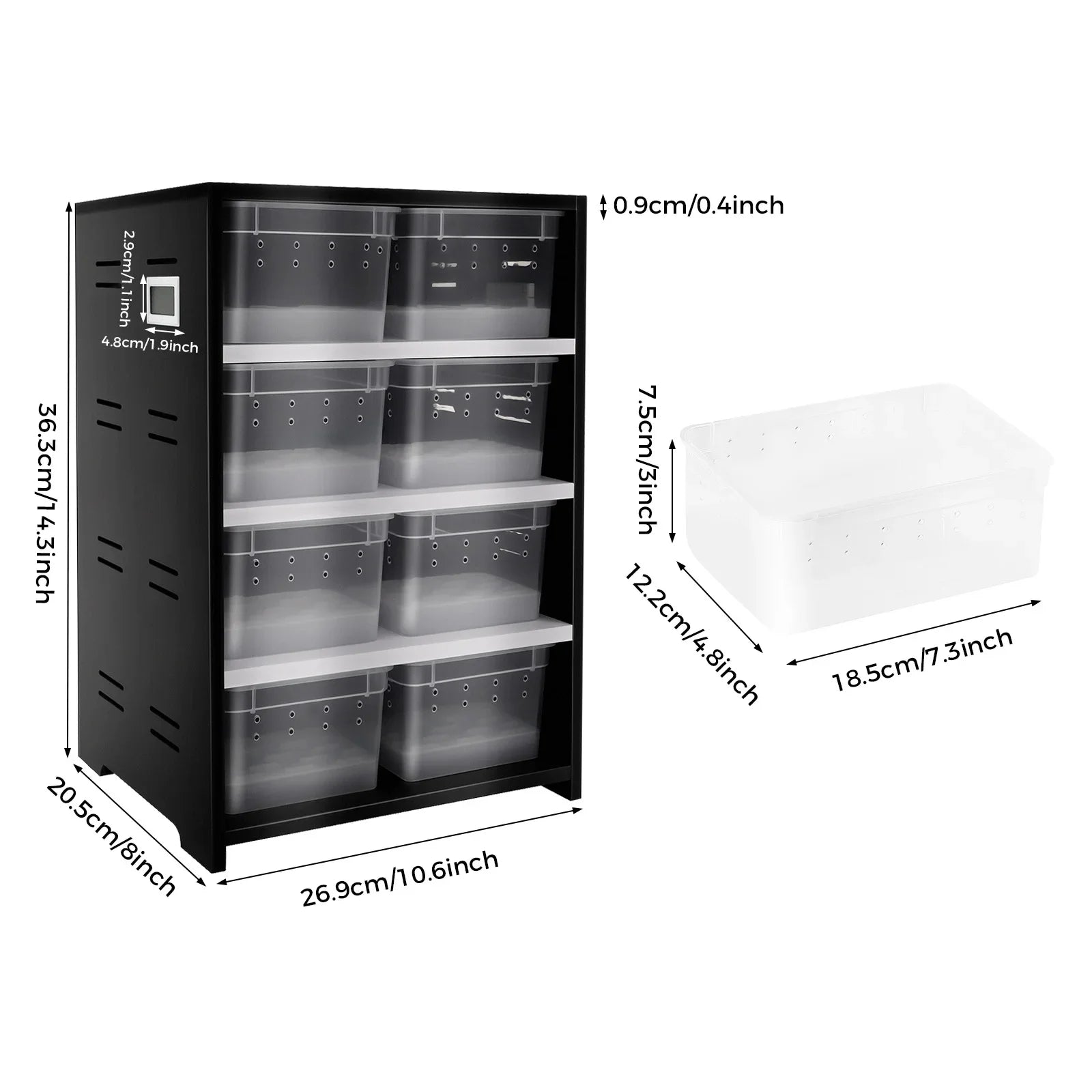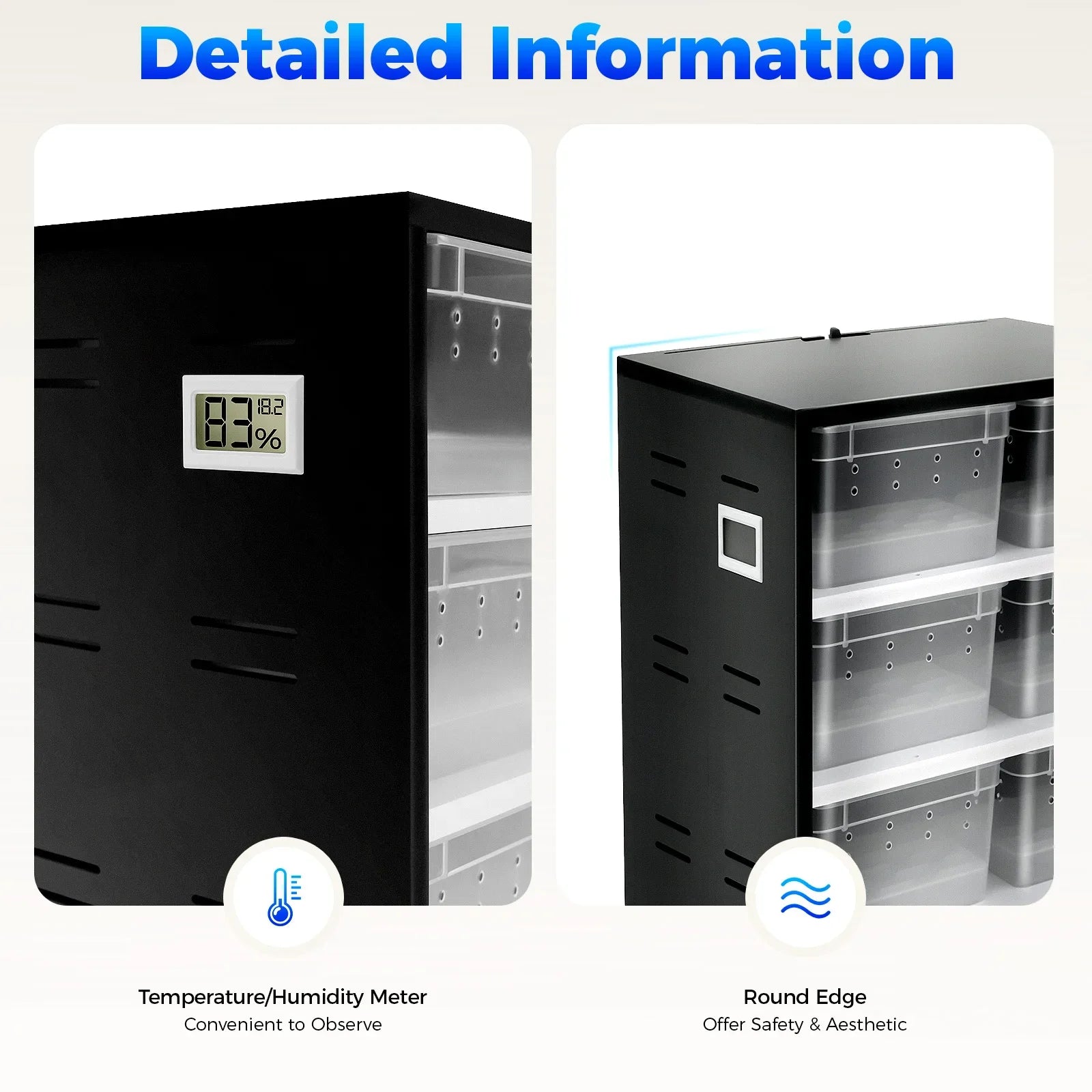 Temperature/Humidity Meter: It is convenient for you to observe the ambient temperature and humidity inside the cabinet at any time.