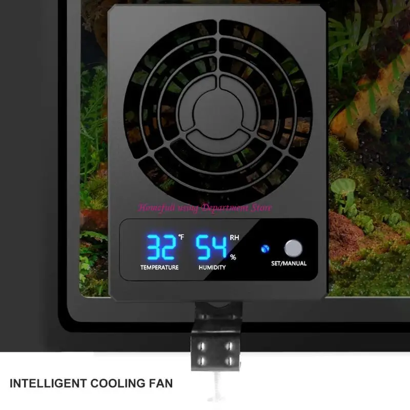 Elevating your reptiles habitat with our Intelligent Terrariums cooling Fan, featured automatic temperature control and LED display for great climate management.