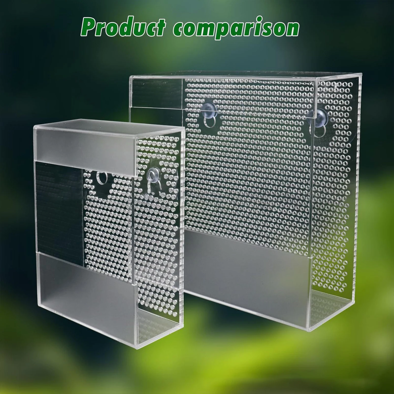 Dank der stabilen Saugnäpfe lässt sich die Box flexibel an den Wänden des Terrariums befestigen – ideal für kleine wie auch größere Gehege. Das spart Platz und schafft eine hygienische, leicht erreichbare Futterstelle.