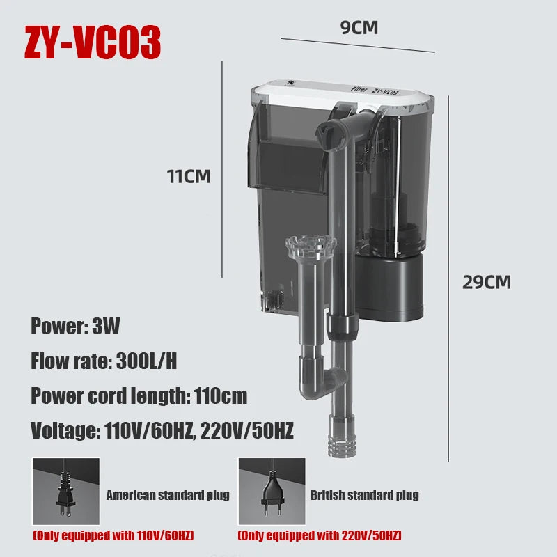Aquarium Hängefilter 3-in-1 – Außenfilter mit Umwälzpumpe & Wasserfall-Belüftung (110V/220V)